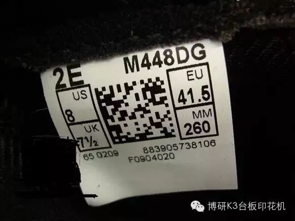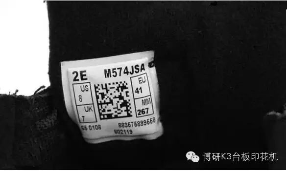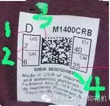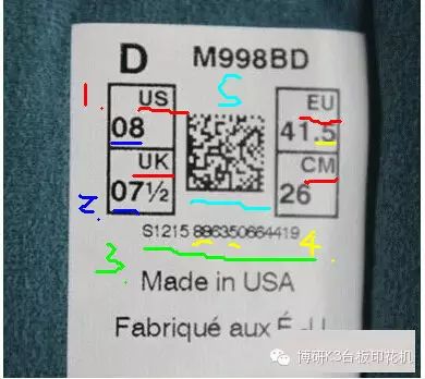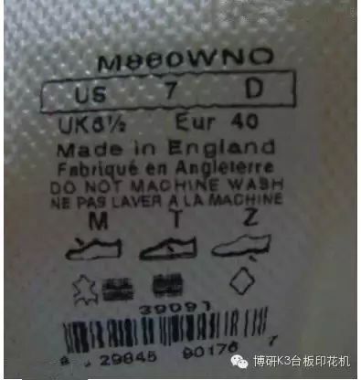 2.框内的US UK EU MM 4个英文字体相对框内的4个数字要墨水轻,比较细,US UK EU MM没两个字母间间隙比较小,此外MM相对EU贴近右边框的间隔要小。US UK 对应下的数字贴近边框的间隙要比EU MM下的数字贴近边框的间隙小。